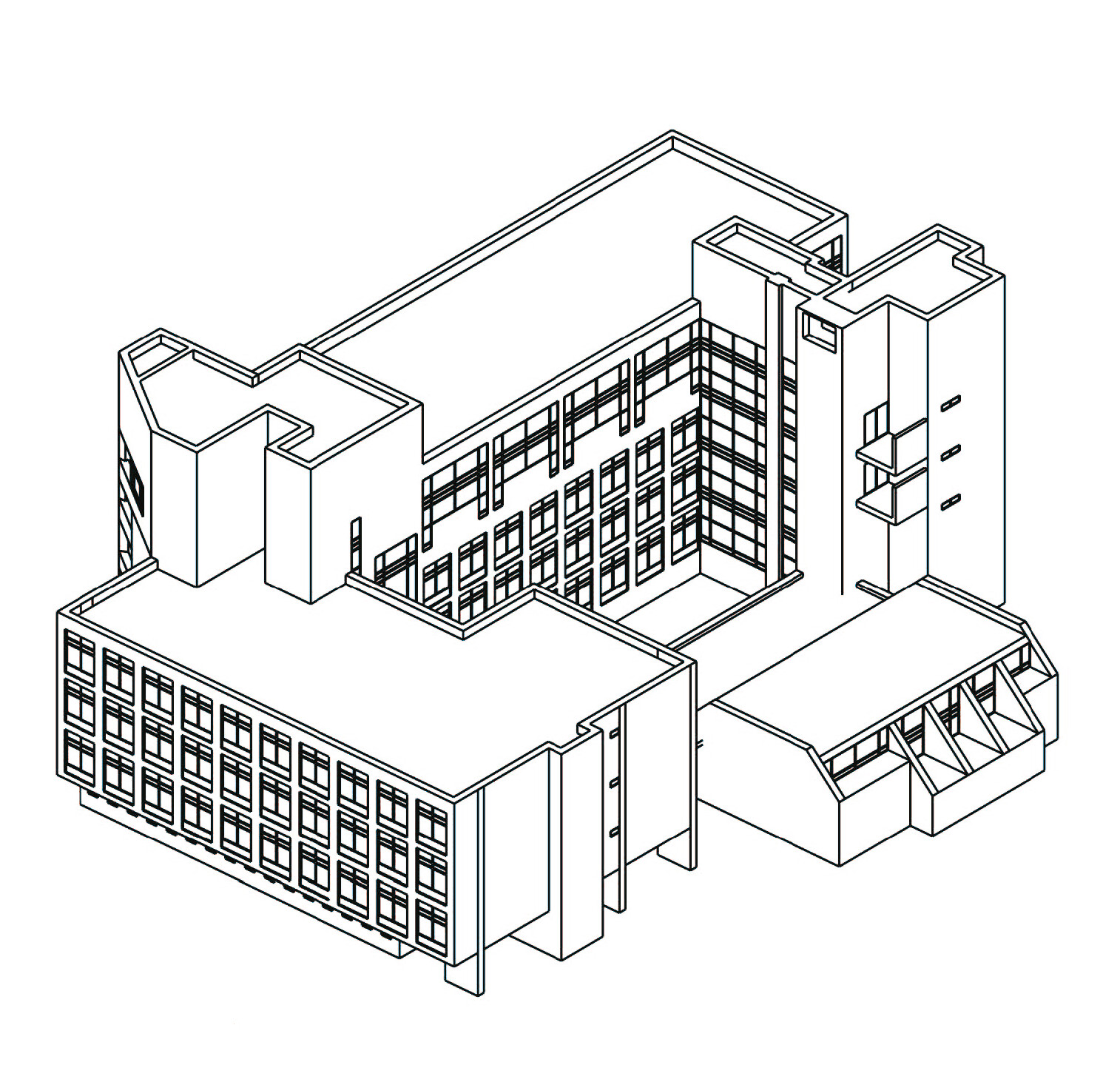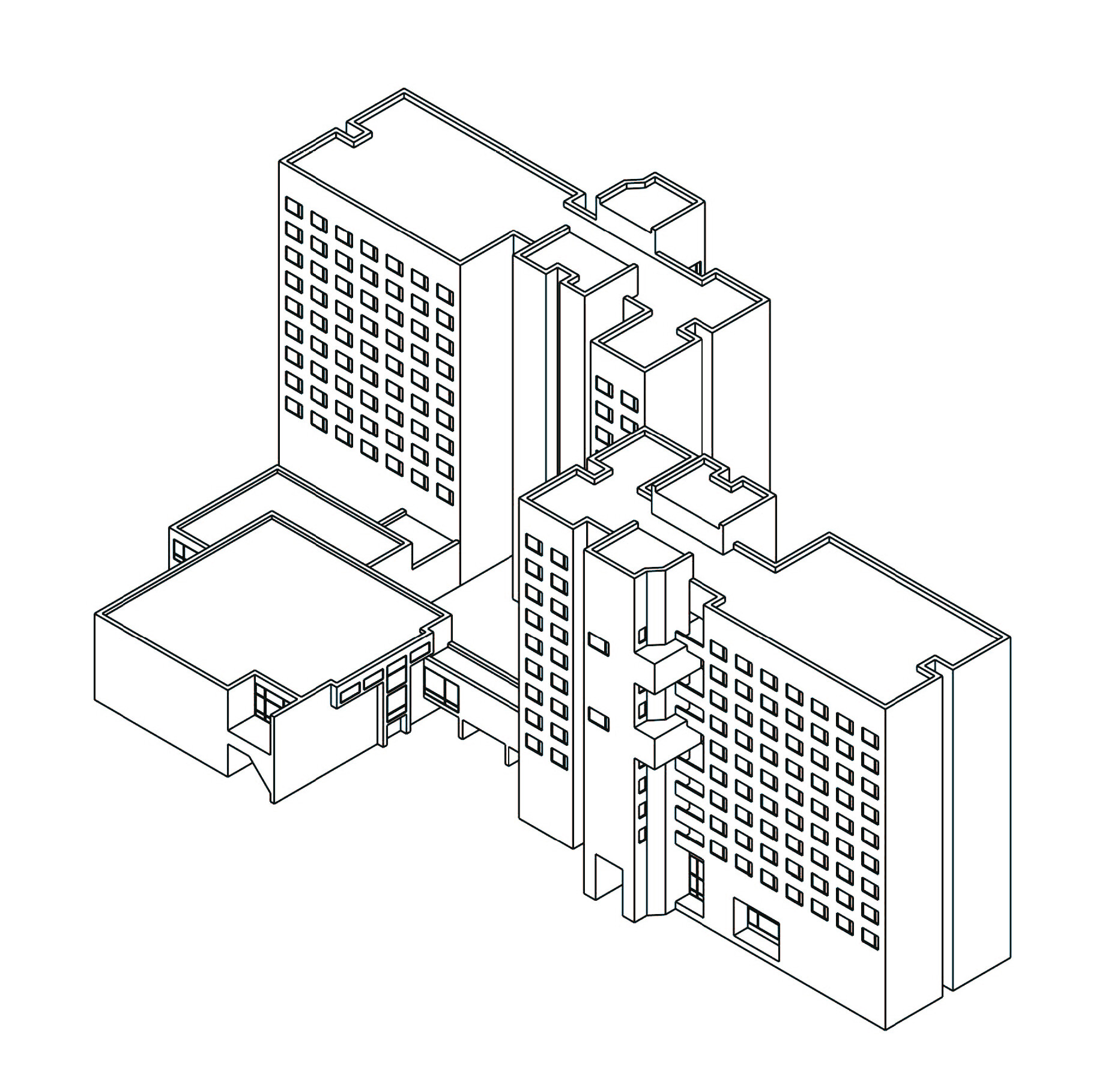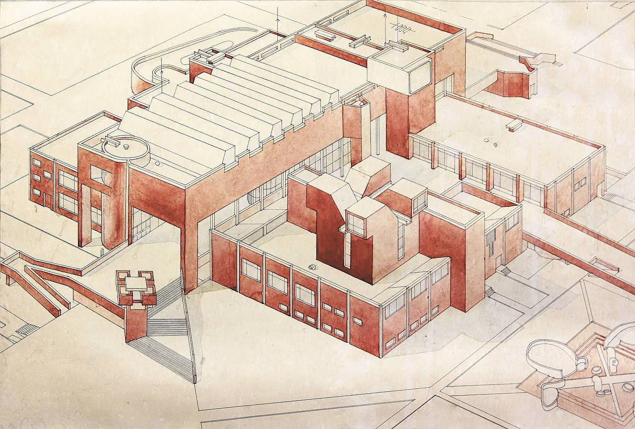(Аксонометрии зданий Управления эксплуатации и Большой Гостиной, брендбук города, дизайн-бюро ВОСХОД)