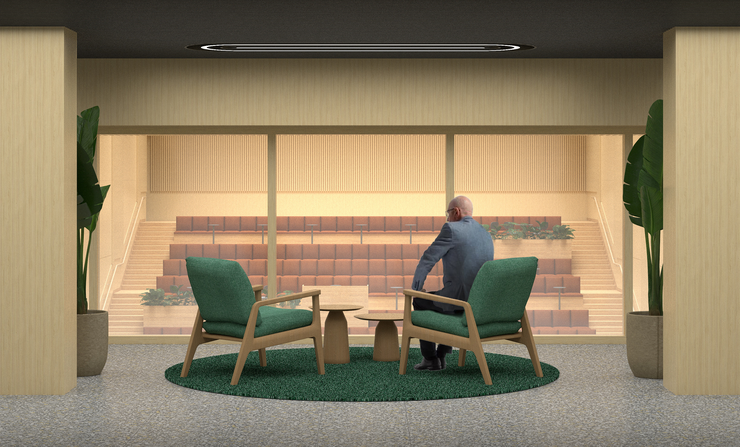 Атриум — «городская площадь», трансформируемое пространство на 400 мест с многофункциональной трибуной для событий и неформальных встреч.